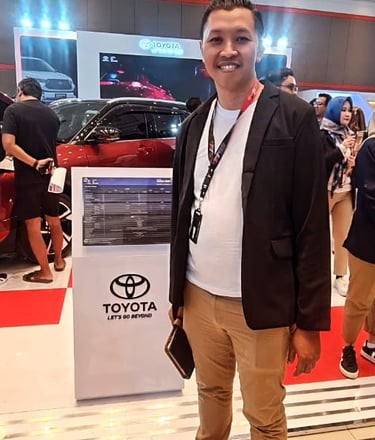 "Sales Dealer Tunas Toyota resmi yang sudah berpengalaman di bidang penjualan dan pemasaran mobil Toyota di kota Bandung.Pelayanan yang responsif dan solusi kredit yang fleksibel adalah visi misi nya untuk tetap menjaga kepuasan konsumen Toyota.